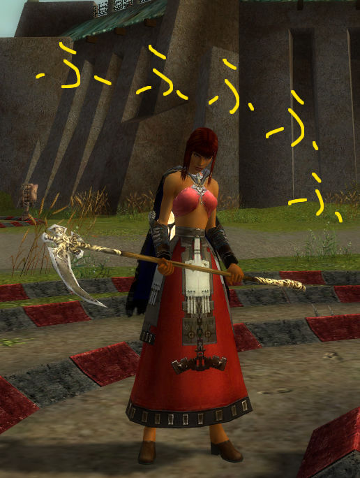 工工エエェェ(´益`)ェェエエ工工 ゲーム 2006年07月28日 0 DDOオープンβ一時停止・・・。始まったの昨日なのに・・・。_| ̄|○⇒_|\○_⇒_/\○_⇒____○_ギルドウォーズでは、C3体験イベントが始まりました。新職業の槍使いと、鎌使いがPvPで遊べます。個人的に、槍より鎌のほうが楽しそうな気がしたので、鎌使いの、ダルウィーシュを作ってみました。被り物は、格好悪いです・・・。そして・・・変身スキルあります!!かなり、微妙ですが・・・。鎌は、範囲攻撃になっているので、かなり楽しかったです。ぜひ、RPモードで使ってみたいキャラですよ。鎌(・∀・)イイ!!で、前回と同じく、体験イベントでは踊れませんでした。(´・ω・`)ショボーンとりあえず、C3パッケージ購入決定な気分の、しもつかれでした。