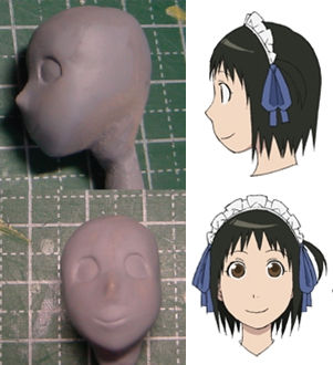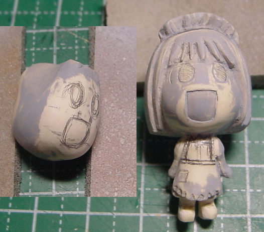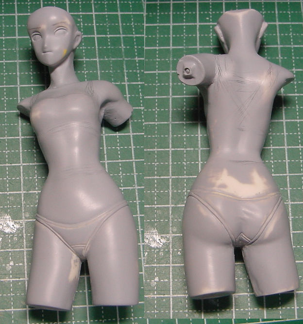 紺先輩製作中・・・。 フィギュア製作 2010年12月08日 2 前に作った「神代マヤ」をベースに「紺双葉」を作り始めてみた。←これを、こんな感じに。→複製した物を、盛り削りしました。目の位置とあごのラインを修正。服を削り取り、胸も小さくした。パンツを追加。右腕を切断。一応、学祭のメイド服にする予定。ポーズは「神代マヤ」と同じになる気がする。で、当初作っていたはずの「歩鳥」は・・・。削れば削るほどムーミンのようになっていくので、制作中止。