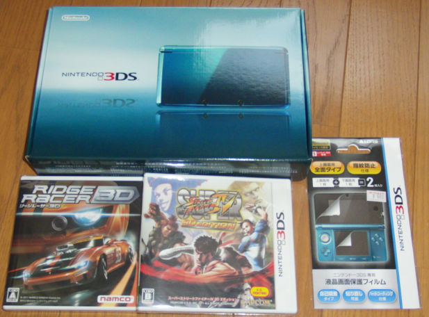 ニンテンドー3DS発売 ゲーム 2011年02月26日 0 セブンネットで予約していた、ニンテンドー3DSが届きました。ゲームと液晶保護シートを、ヨドバシ宇都宮で購入。とりあえず、液晶保護シートを付けてから初期設定。3Dすげぇ・・・飛び出さないけど。ストリートファイターも奥行きがすげぇ・・・。リッジレーサーも、なかなか・・・。あと、そんなに目が疲れるってことは無かった。 PR