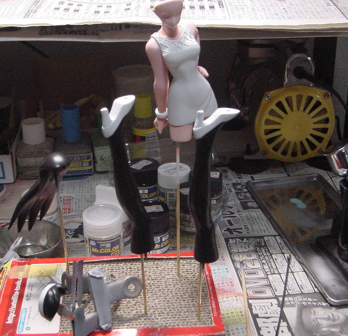 神代マヤ製作中・その11 フィギュア製作 2010年10月17日 0 現在、塗装中。肌色の塗装に、GSIクレオス製の「美少女フィギュア・フレッシュセット」という、店頭で買うのが激しく恥ずかしいカラーを使用してみました。説明書のようにオレンジ系の塗装をしてみましたが、赤みが強く思った肌色にならなかったので・・・。一番上に、キャラクターフレッシュ(1)をのせてぼかしてみました。とりあえず、エアブラシ塗装はここまでで終了です。次は、筆で細かいところを塗っていきます。明日から仕事か・・・連休中に完成させたかったな。(´・ω・`)ショボーン