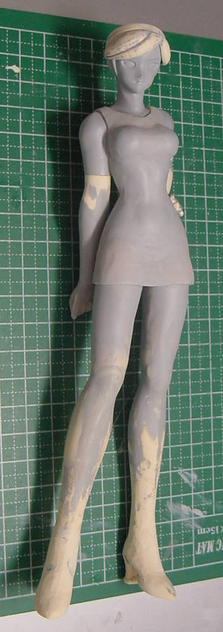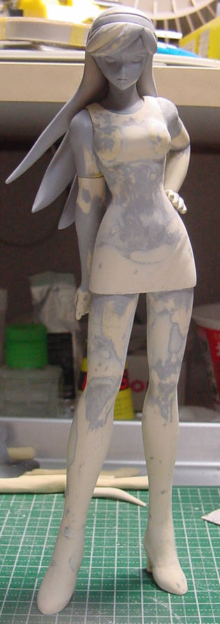 神代マヤ製作中・その4 フィギュア製作 2010年09月13日 0 今月は休日が多いのに、先月と仕事量が変わっていないので激しく忙しいです・・・。現状服の形にエポパテを盛り、荒削り。あとは、服の形を整えながら、シワと模様?を彫りこまないと・・・。