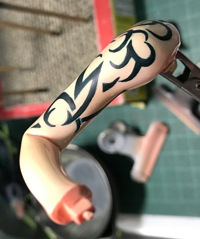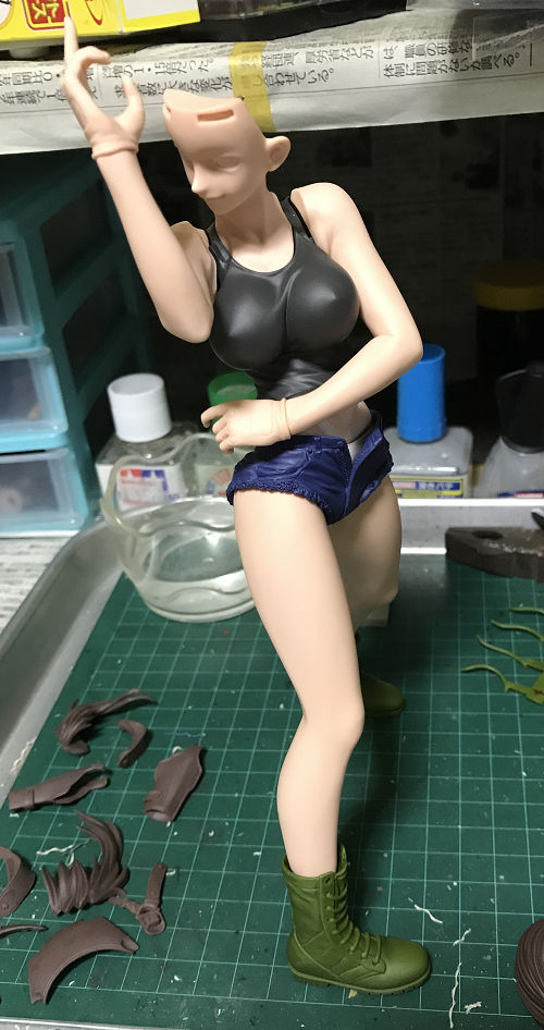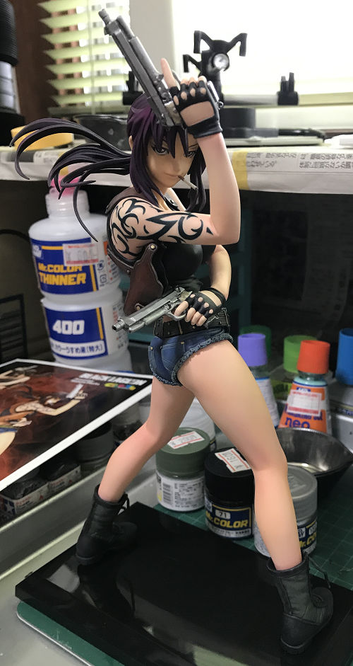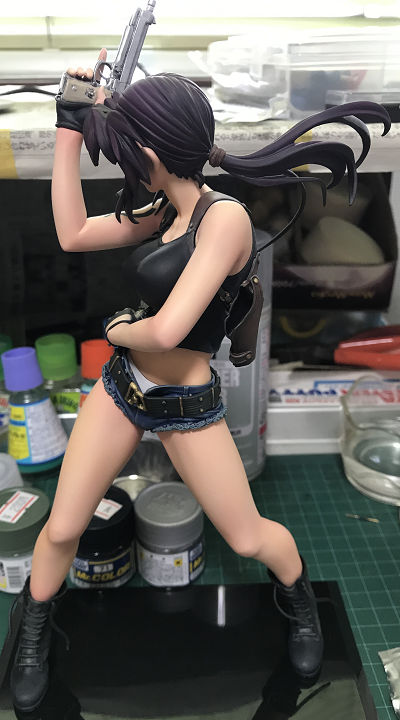 まだ消えてなかった・・・。 ガレージキット 2017年09月17日 0 このブログを1年以上放置していたので、てっきり消えていると思っていたら残ってた。とりあえず、久しぶりにガレージキットを作ったので更新してみる。ボークス製キャラグミンのレヴィを買ってみました。 最近のガレージキットは色プラみたいな感じに色分けされていたりして、ちょっと感動した。しかも、ほとんど気泡がないので表面処理も楽々。でも、塗装無しだと残念な感じに仕上がりそう。 このキット最大の難関、刺青デカール。模様の切れているところで分割して、マークセッターとマークソフターを駆使して張り付けた。たしか、8分割位にしたような気がする。張った後はクリアーを厚めに吹いて水研ぎ、さらにクリアーでつやつやに。しかし、色がおかしい・・・。 色があまりにも明るすぎるので、シーブルーで模様をなぞって塗り重ねた。その後、さらにクリアー厚塗りで水研ぎ。 付属デカールの目が優しすぎるので、デカールは使用せずに書き込んでみた。ついでに、煙草をくわえさせる穴をあけた。 さくっと、完成。色分けされているので、マスキングがとても楽でした。キャラグミンすげぇ。