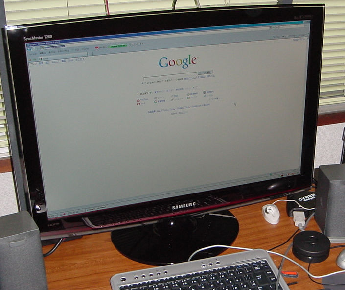 にゅ~もにた~ 未選択 2009年03月22日 2 新しい液晶モニターを探し、ショップ巡りしてみました。16:10の24インチぐらいで、5万円以下を目標!!家の近所から順番に、コジマ→ヤマダ→ヨドバシ→ドスパラ→TWOTOPと、見てまわる事に。コジマ&ヤマダ・・・選べるほどの品物なし・・・駄目だこの店。ヨドバシ・・・展示品はあるものの、安い液晶(ACER製)は品切れで取り寄せ・・・高級品しか売ってない感じ。ドスパラ・・・LG製25.5インチが32000円。でもこの機種ブラックアウトする不具合が・・・あとは、16:9の液晶しか売ってない。TWOTOP・・・限定5台でサムスンのT260が32980円!!思わず飛びついた・・・。25.5インチ・・・で、でけぇ・・・解像度も1920x1200で、デスクトップ広々です。ギルドウォーズ等、ゲームも無駄に広々!!初期設定状態だと眩しすぎて目が潰れそうなので、明るさをかなり下げて使用してます。ただ、ドット抜けを左下に1箇所見つけてしまい、ちょっと落ち込み気味・・・ドット抜け保障入っとけば良かったなぁ。(´・ω・`)ショボーン