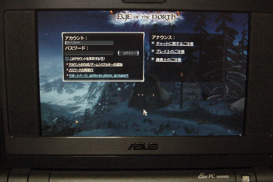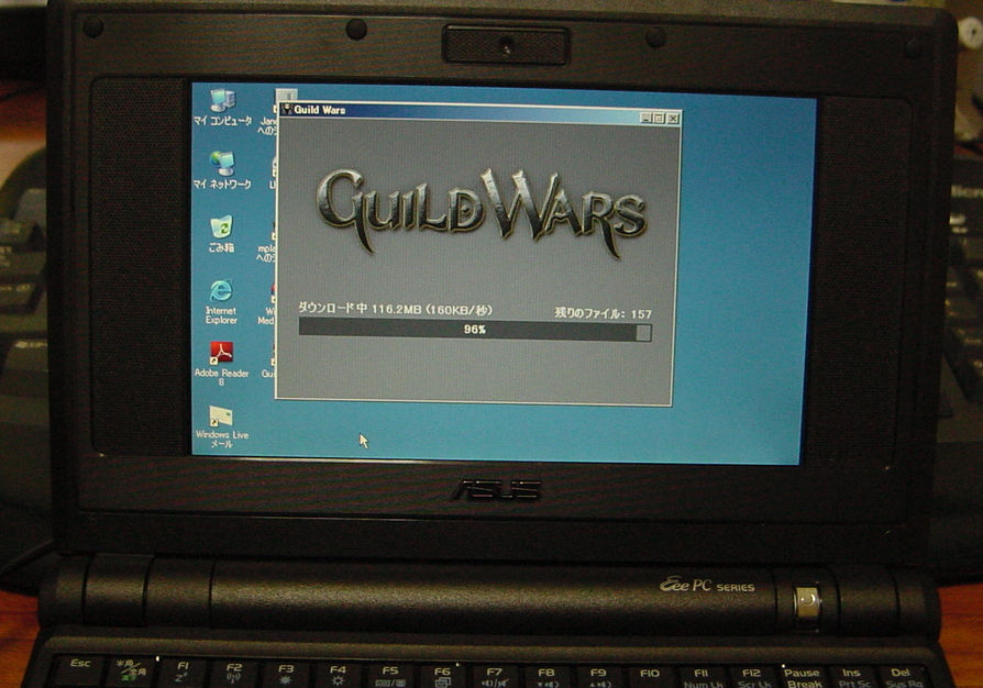 EeePCにギルドウォーズをインストールしてみた。 ゲーム 2008年01月29日 13 EeePCにギルドウォーズをインストールして、遊べるか試してみました。まず、本体のSSDは容量が4GBなうえ、OSがインストールされているので、容量不足でインストールできません。SDHCカードにインストールしようとしても、リムーバブルディスクにはインストールできない仕様になっていました。外付けHDDにインストールだと、持ち運びに不便なので意味がありません。と、途方にくれていたとき、ネットで良い情報を見つけてしまいました。SDHCカードをHDD化これなら、直接SDHCにインストールできるんじゃないかと、試してみることに。簡単にHDD化成功!!そして、ギルドウォーズをインストールしてみる。直接SDHCにインストール成功!!その後、起動!!おぉぉぉ!!こいつ、動くぞ!!!ゲームの設定は、速度重視の最低にセット・・・まぁ、仕方が無いか。ショートカットに-DX8も追加。でも、重い・・・カクカクです。で、ログインワーイヽ(゚∀゚)メ(゚∀゚)メ(゚∀゚)ノワーイキャラ選択、ポチッとな。すんげー長いダウンロード・・・。そして、重大なエラー発生・・・クライアント落ち。ゲームできね~よ!!最初に全部ダウンロードしておけば、動くかなぁ・・・?でも、面倒だからアンインストールだ!!今度は、違うゲームも試してみようかと思います。