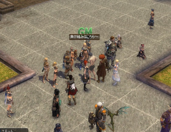 ギルドなウォーズ ゲーム 2007年06月26日 0 ギルドウォーズにて・・・今夜(6月26日)20:30カイネン中心街で、GMのだるまさんがころんだイベントがあるらしい。スキルトレーナー前に集合とな・・・ちょっと覗いてみようかな。「だるまさんがころんだ」イベントに参加してみました。リチュアリストの、「すたみな健太」で突撃!!裸になり、GMさんが来るのを踊りながら待つ・・・。20:30頃、GMさん登場。そして、GMさんがいじられつつ「だるまさんがころんだ」開始!!3回目ぐらいの「だるまさんが」「~」「ころんだ!」で・・・「~」で止まっていたはずなのに・・・。負けました・・・ラグなのかなぁ。。・゚・(ノД`)・゚・。いつの間にか、2人目のGMさんが現れる!!そして、負け組み・・・_| ̄|○ゴールした人と、生き残った人達は勝ち組みSS撮影会開始。で、負け組みな人々はGMさんをいじりつつ、放置・・・。(´・ω・`)ショボーン暇だったので、GMさんにチョキでカンチョーしてみたら・・・。GMさんが、グーで対抗、その上Wisで「私の勝ち」って送ってきました・・・あぁ、SS撮り忘れた。_ノ乙(、 冫、)_いや・・・わしカンチョーしてたんだけど・・・(;´Д`)GMさんにWis返そうと思ったら、なぜか送れなかった。今度は、今週の木曜日に「だるまさんがころんだ」イベントやるそうな。次も参加だな・・・。(・∀・)ニヤニヤ