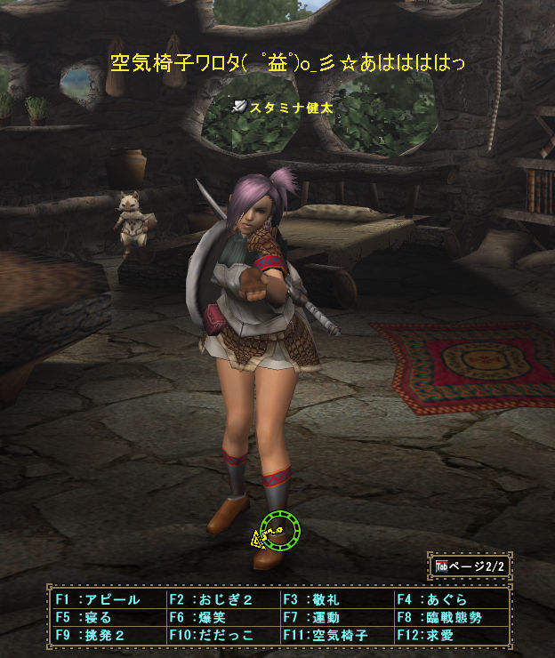 第2回だるまさんがころんだ! ゲーム 2007年06月29日 1 昨夜、ギルドウォーズGMイベント第2回「だるまさんがころんだ」に参加してきました。今回は、GMが3人も来ていました。しかも、前回より参加者が多い気がする。ほんの少し、グレードアップなのか?次行きますよの掛け声に反応して、歩いちゃった・・・_| ̄|○最後に全員で、集合写真撮影。そして、いつのまにかみんな服を着ている・・・。イベント時の裸は、正装(私だけ?)です。| 冫、)ミンナヌゲバイイノニ一方、ベルアイルでは・・・こんな格好で、石掘ってます。(・∀・)ニヤニヤ石堀りの称号「マイナー」が付きました。そして、オープンβ開始から1度もINできないまま、昨夜23時にサーバメンテに入ったMHF・・・。ダレットとカプコン、なにやってんだ!!いつになったら、再開するんだよ!!!ヽ(`Д´)ノウワァァァン本日16:00サーバ増設で、「モンスターハンターフロンティア」オープンβ初プレイ成功!!サーバ②で始めてみました。キーコンフィグが、タイトル画面でのオプションでしか変えられない、糞仕様です・・・。キーボード&マウス操作が、激しくやりづらいです。PSコントローラーを繋いでみましたが、ボタンが足りません。(;´Д`)専用ゲームパットを買う(売り切れ店続出)か、キーボード操作に慣れるしか・・・カプコンめぇ。(ノ゚益゚)ノミ┻┻ゲーム自体は、モンスターハンター2そのものです。エモートは、全24種類で踊り(フラダンスっぽい)もあります!!SSは、求愛です・・・投げキッス。課金するかは、微妙。