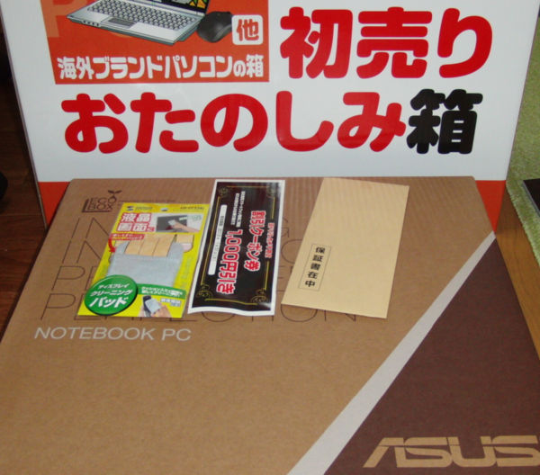 明けましておめでとうございます。 未選択 2012年01月01日 2 ヨドバシカメラ宇都宮で、「初売りおたのしみ箱」買って来ました。海外ブランドパソコンの箱 1万円朝4:00から並んで、ぎりぎり買えた。中身は、ASUSのX54Lで、CPUペンティアムB940のモデルでした。ASUS公式X54Lのページ1万円なら、良い買い物だったと思う。今朝の、宇都宮の気温-1℃・・・死ぬかと思った。 PR